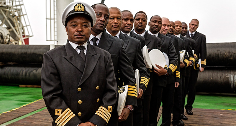 Christened the mv SS Nujoma after Sam Shafiishuna Nujoma, Namibia’s first president, the vessel was launched at a ceremony held June 15 in Walvis Bay, Namibia. Namibia is located in southern Africa, directly to the west of Botswana. Its entire western border is the Atlantic Ocean.
