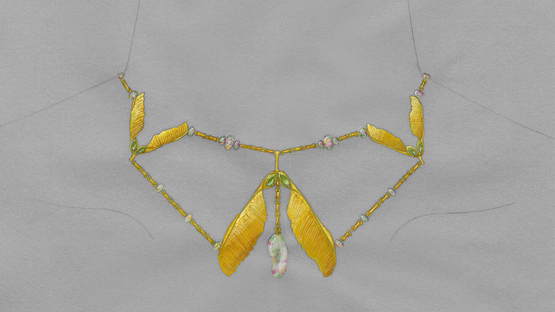 The brooch, our Piece of the Week, shows the chromatic spectrum through a holographic coating on rock crystal.