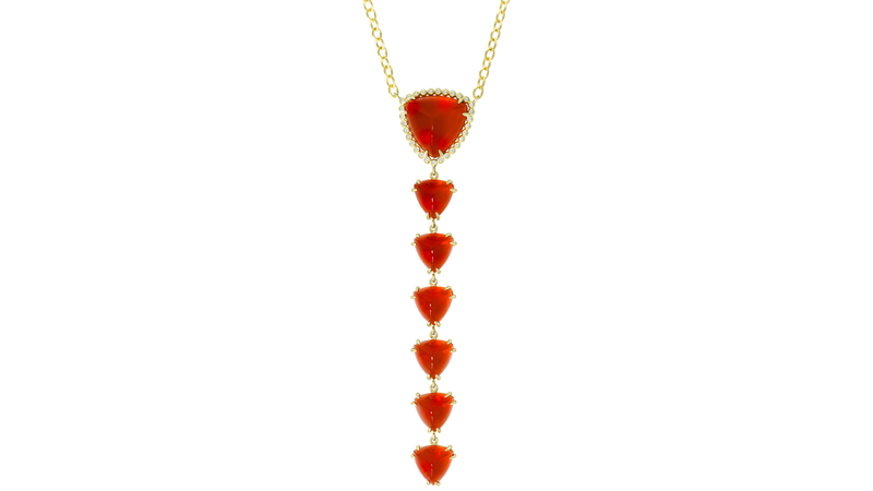 Orange sapphire, Mexican fire opal, and spessartite garnet were heating up the desert at both trade shows. While orange isn’t for everyone, it is stunning and will get noticed.