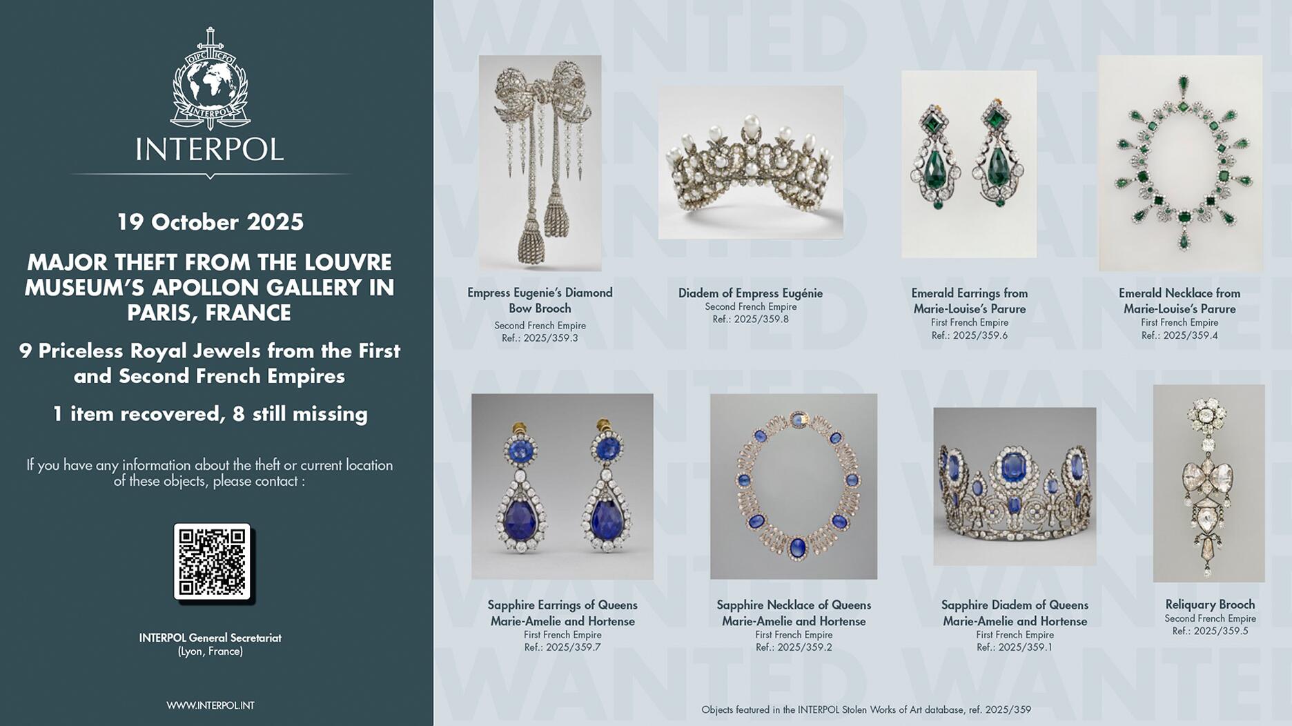 The footage shows two of the jewelry heist suspects descending from the second floor of the museum and then escaping via scooter.