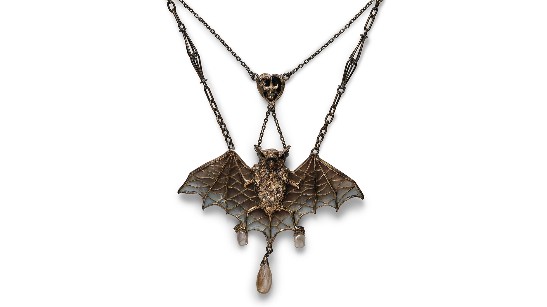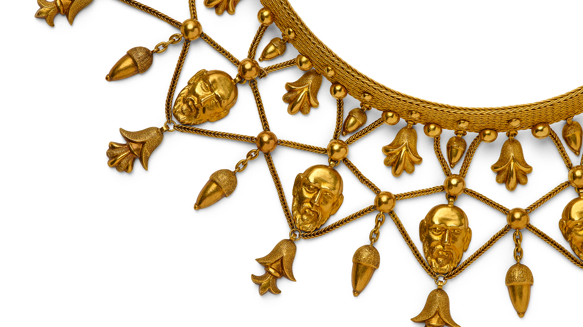 Designers at the time were inspired by ancient civilizations, said the museum, crafting jewels that honored Egyptian, Gothic, and Renaissance styles, like scarab pendants, intricate goldwork pieces, and romantic medieval styles.