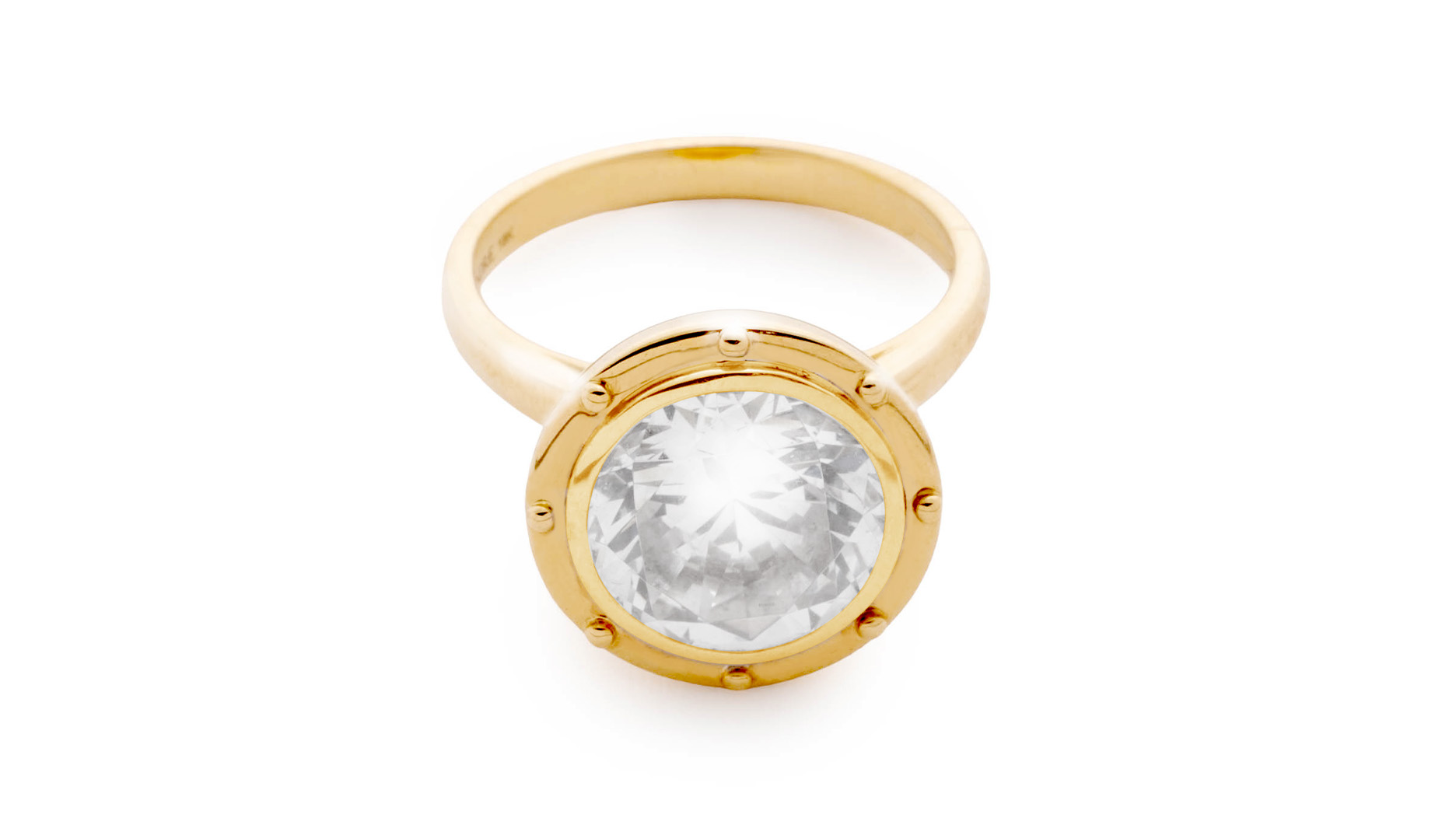 “Our new Lovestruck Pierced Round Solitaire Ring features a bezel inlaid with tiny beads, a nod to the marks left when one’s heart is struck by Cupid’s arrow—because a heart pierced by love is forever changed.”
