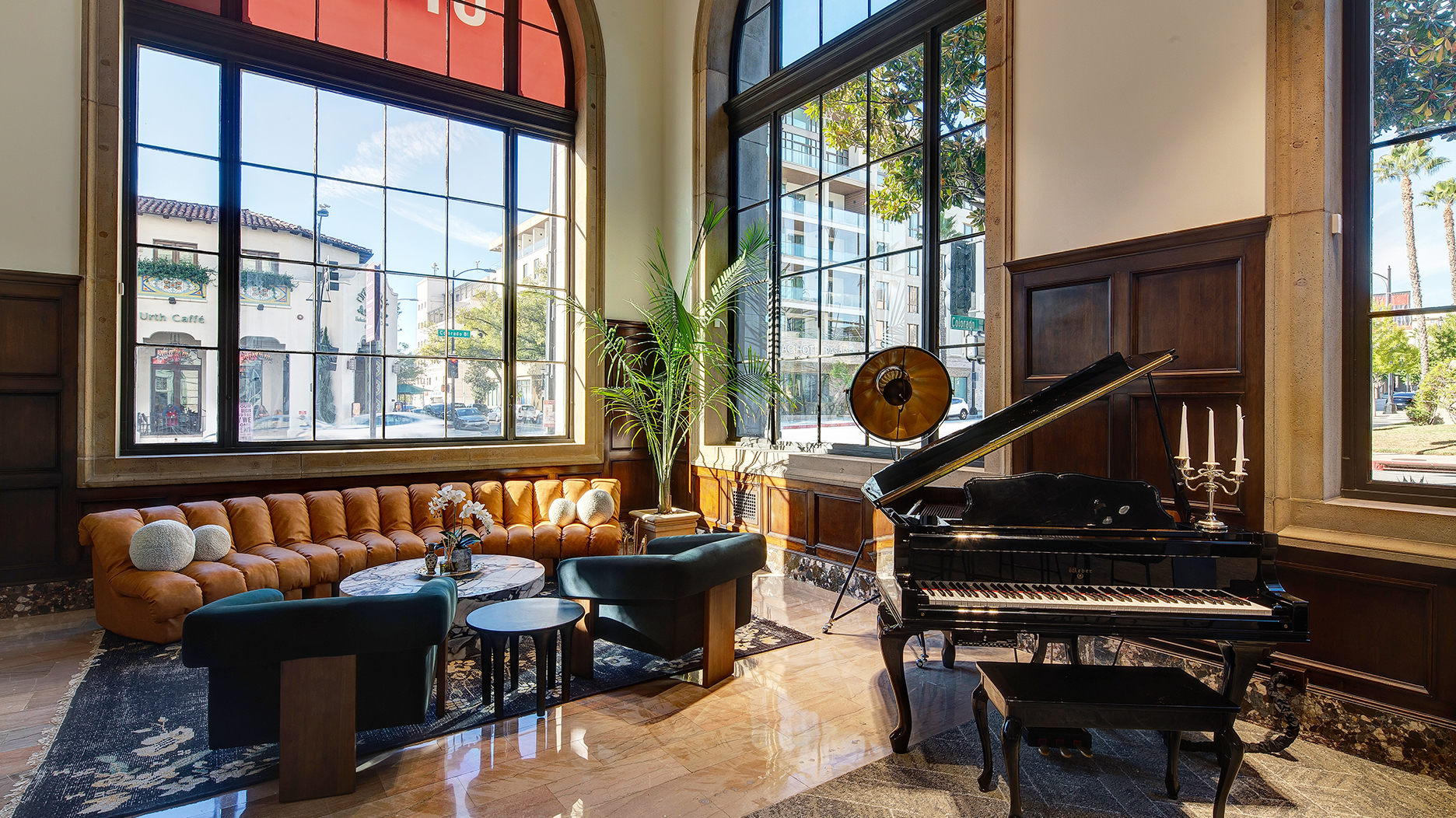 The building that houses the new store, located in Pasadena’s Playhouse District, was built in 1928. The space gives a grand and elegant vibe, with 30-foot coffered ceilings on the first floor and chandeliers.
