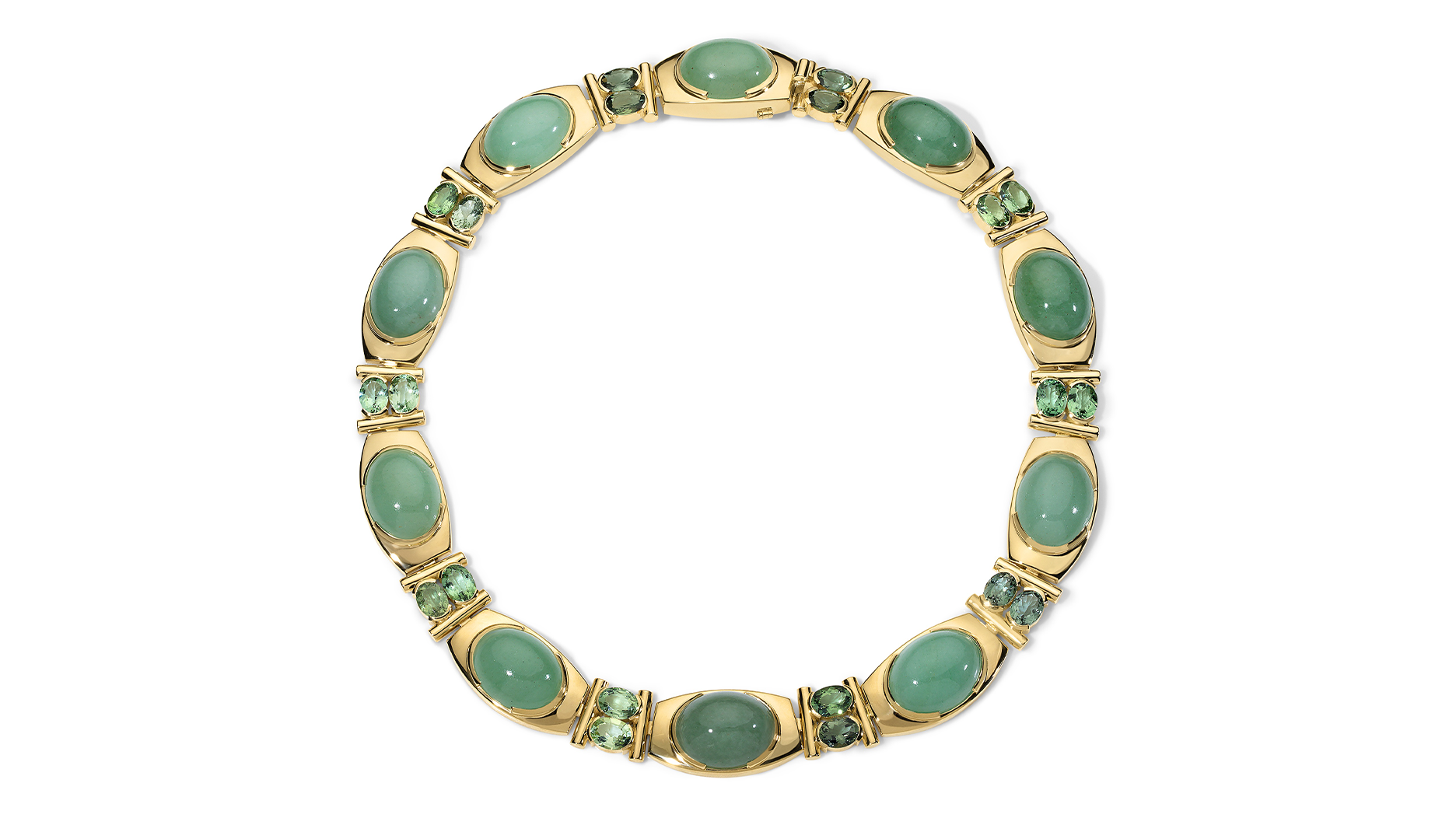 While her cabochon eternity-style “Vic” rings—named after her father—are a popular style for the brand, her latest one-of-a-kinds reach new heights, specifically her “Gloria” collar that debuted at Couture in 2025 and surprisingly didn’t win a Couture Design Award.