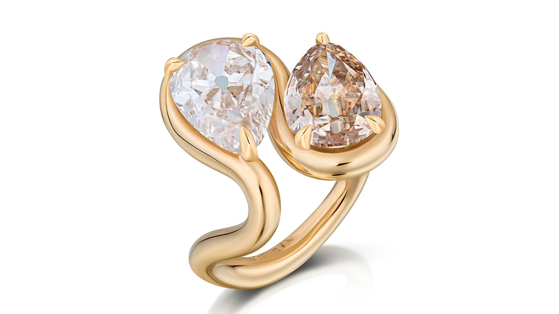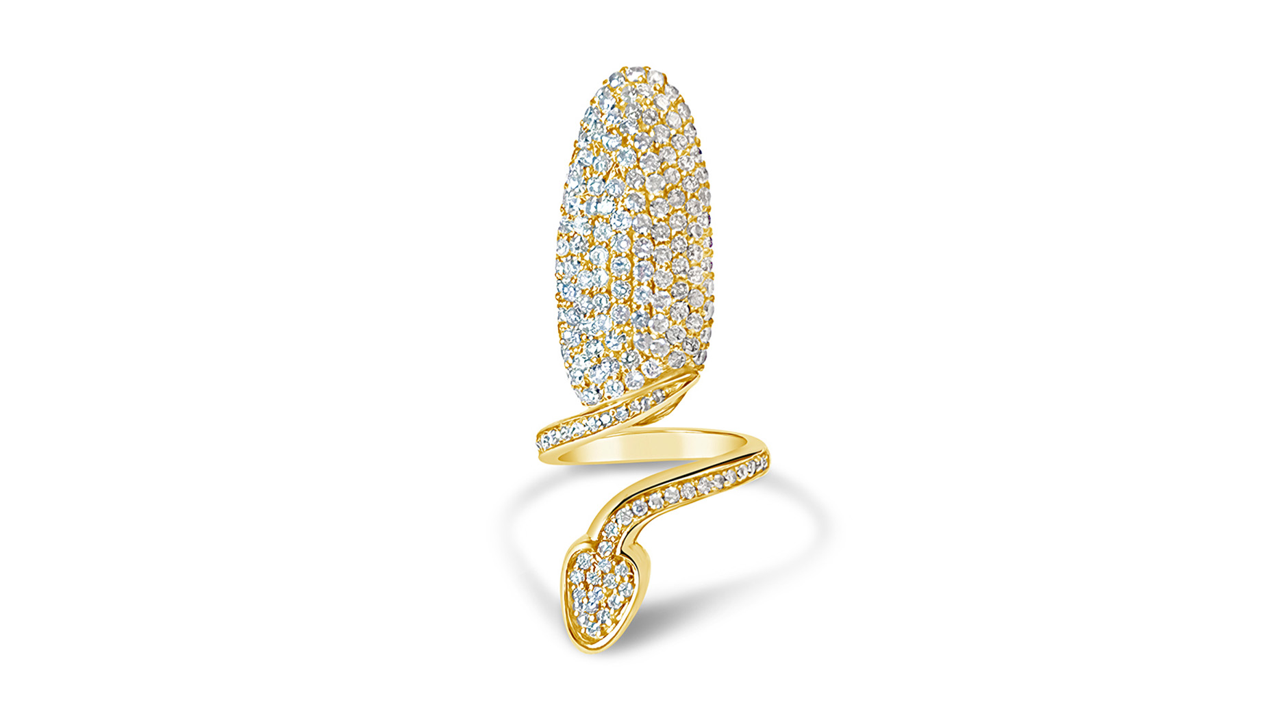 Her designs are filled with curves, fluidity, movement, and hidden secrets, as seen in her Couture Design Award-winning “Zaha’s Secret” ring with pavé diamonds hidden on the underside of the setting.