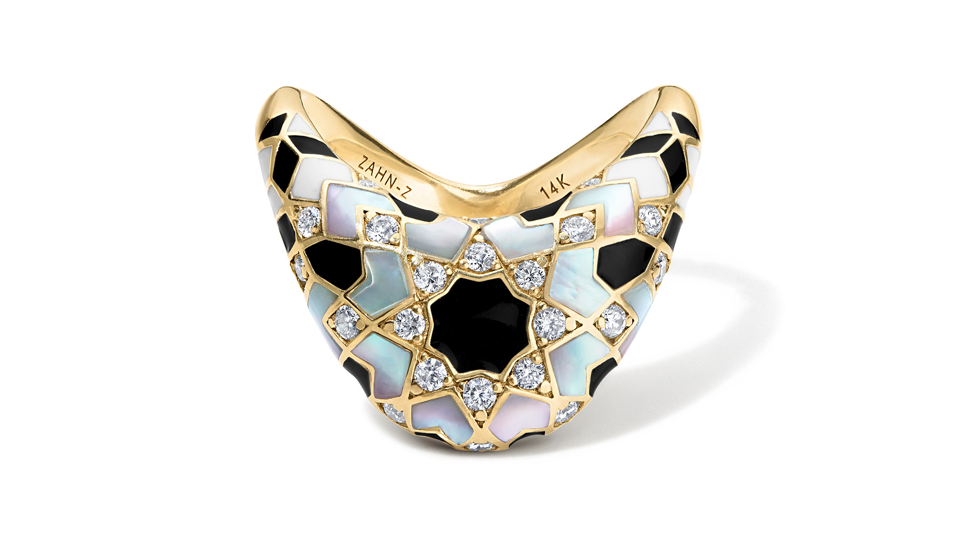 Husayni went on to work as a bench jeweler with Azza Fahmy Design Studio and later moved to New York where she started working with CAD, became a diamond grader, and landed a CAD manager role at Diamonds Direct while starting Zahn-Z.