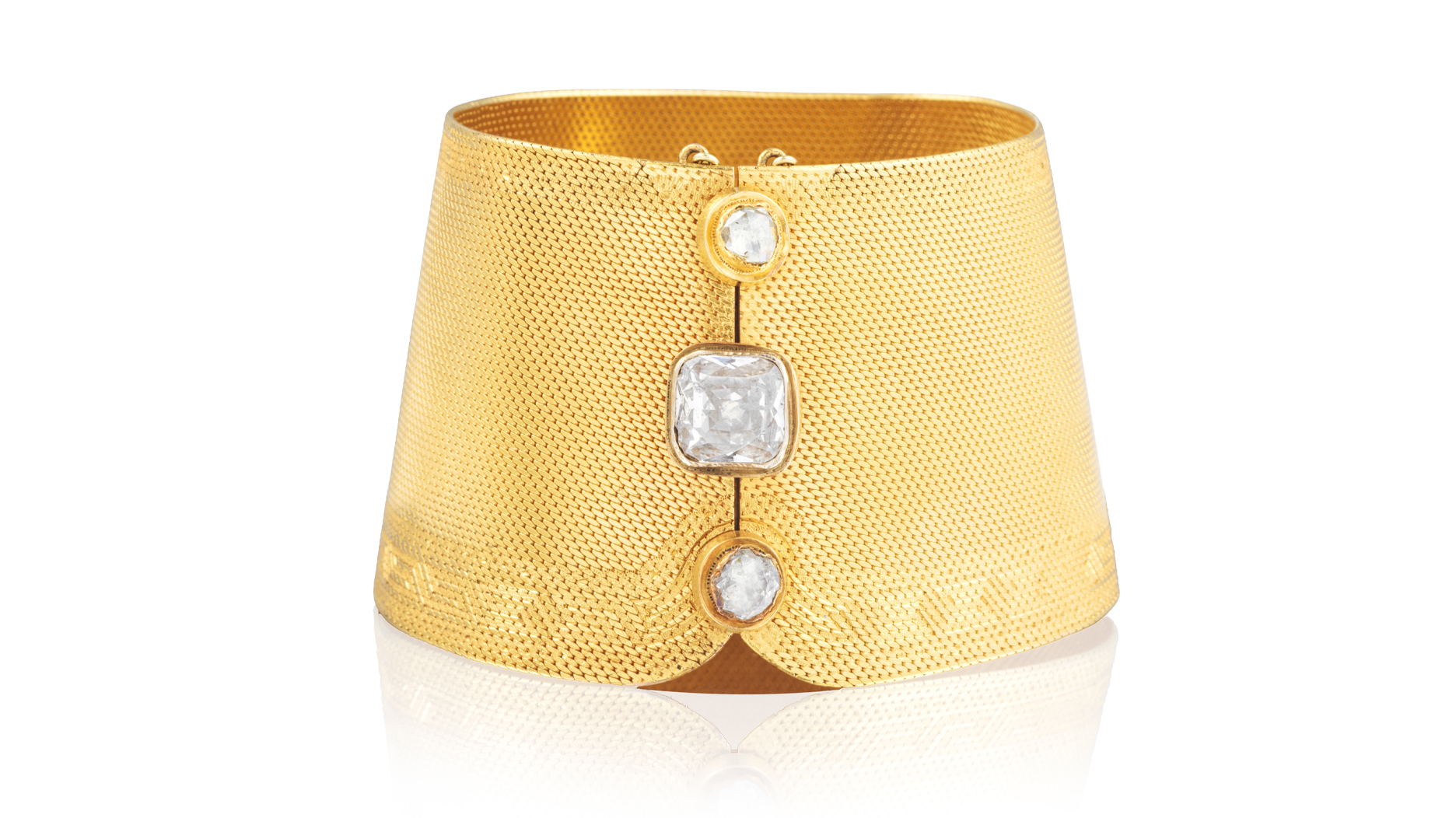 Among the antique offerings is a garnet and diamond necklace, circa 1880, that originated from a Greek princess, which has a pre-sale estimate of €20,000 to €25,000 ($23,000 to $28,500), and a diamond cuff bracelet dating from the end of the 19th century, estimated to sell for €10,000 to €12,000 ($11,400 to $13,700).