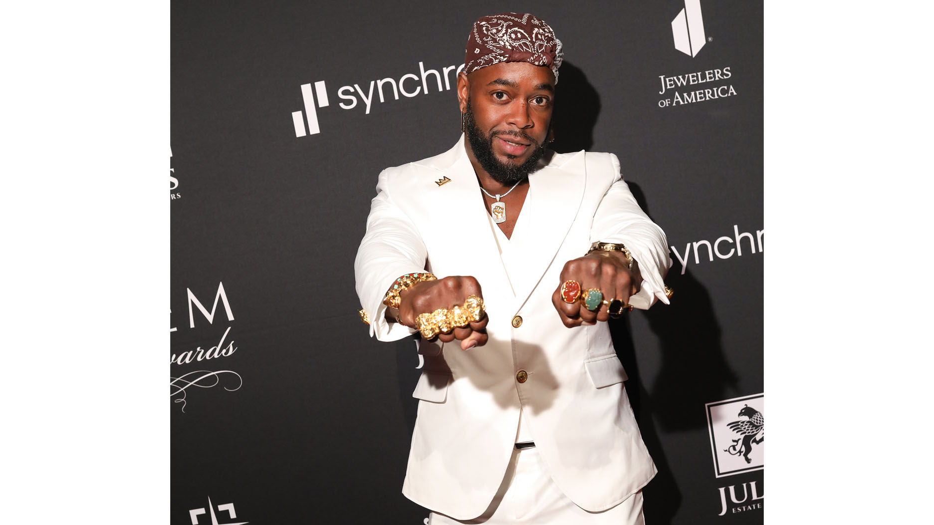 Wearing fistfuls of his own jewelry, the designer opened this speech by offering peace and blessings to the audience before expressing gratitude.