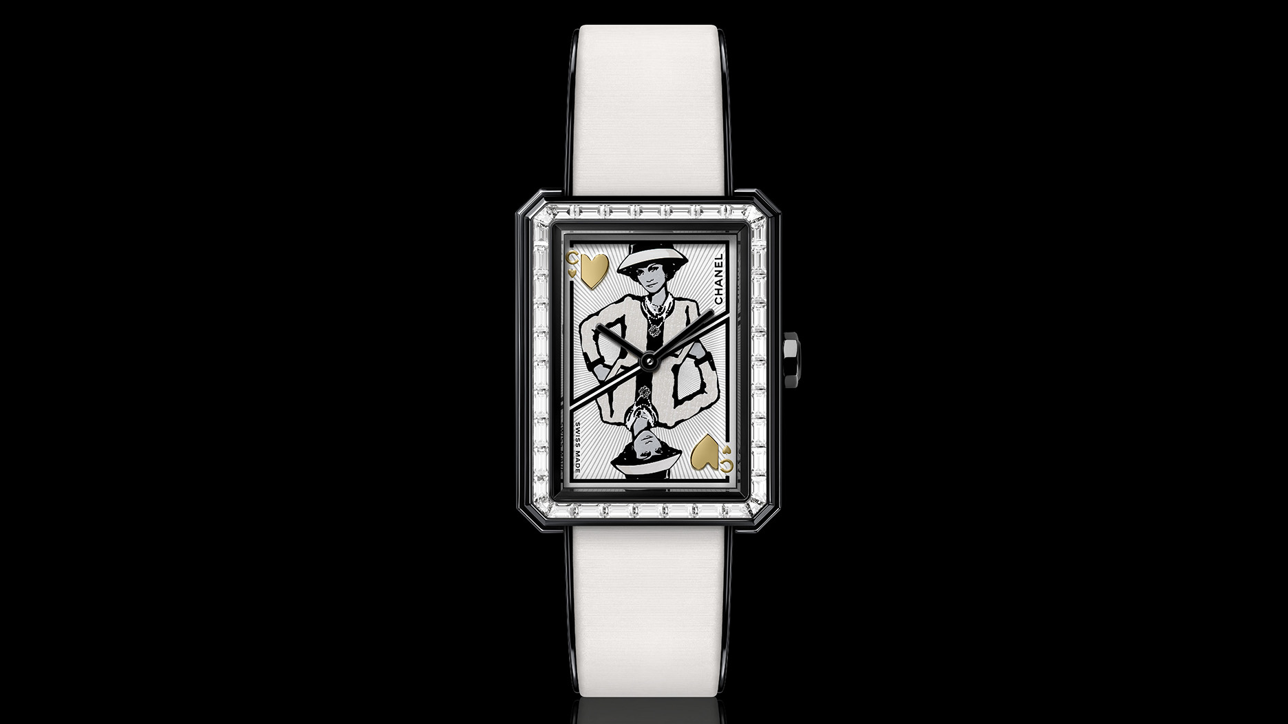 The Coco Game collection’s timepieces were designed at Place Vendôme in Paris, and assembled at the Chanel manufacture in La Chaux-de-Fonds, Switzerland.