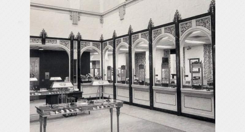 He transformed the 8,000-square-foot building into retail space, preserving most of the original details, including decorative moldings, stained glass windows, woodwork, the bank vault, and teller windows, which are now stations for repairs and appraisals.