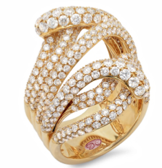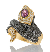 Giuliana Rancic wore Le Vian’s 18-karat yellow gold and diamond earrings and the brand’s 18-karat yellow gold and “Blackberry” diamond snake ring.