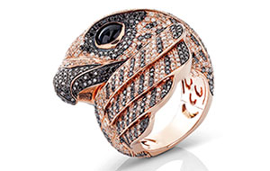 It is “Falco,” the falcon, crafted in 18-karat rose gold and set with brown, white and black diamonds.