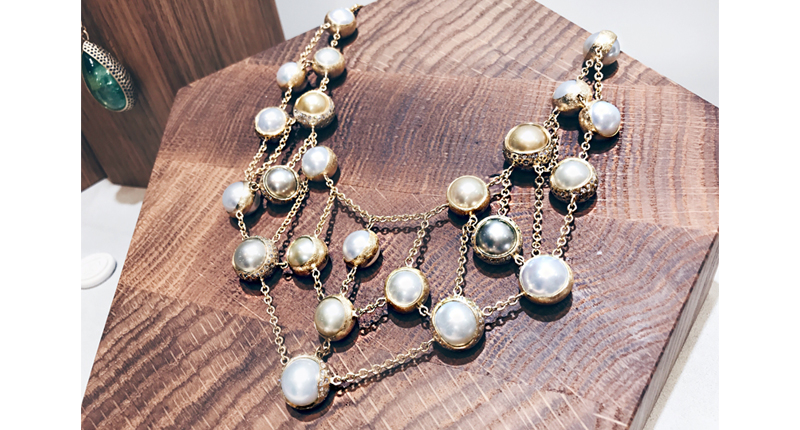 Designer Mizuki Goltz of namesake brand Mizuki had an ultra-busy booth at the show. Goltz has been designing for around 20 years, but she really hit her stride about five years ago when she began to focus on pearls. She was one of the first to usher in pearls’ most recent bout of popularity in which the gemstone is given the fashion treatment.