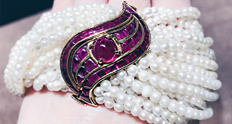 Eclat Jewels creates incredible one-of-a-kind pieces of jewelry and occasionally resells estate pieces with which they’re particularly enamored. I spotted the above bracelet at their booth at the show, notable for its ornate ruby clasp.