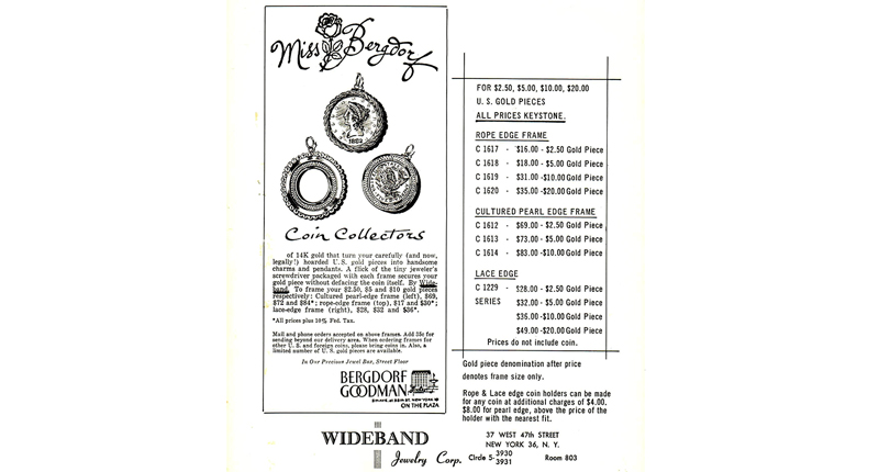 In 1951, Korwin started Wideband Coin Jewelry in New York, a company known for its creative charms that sometimes incorporated coins and, later, specialized in fine karat gold jewelry.